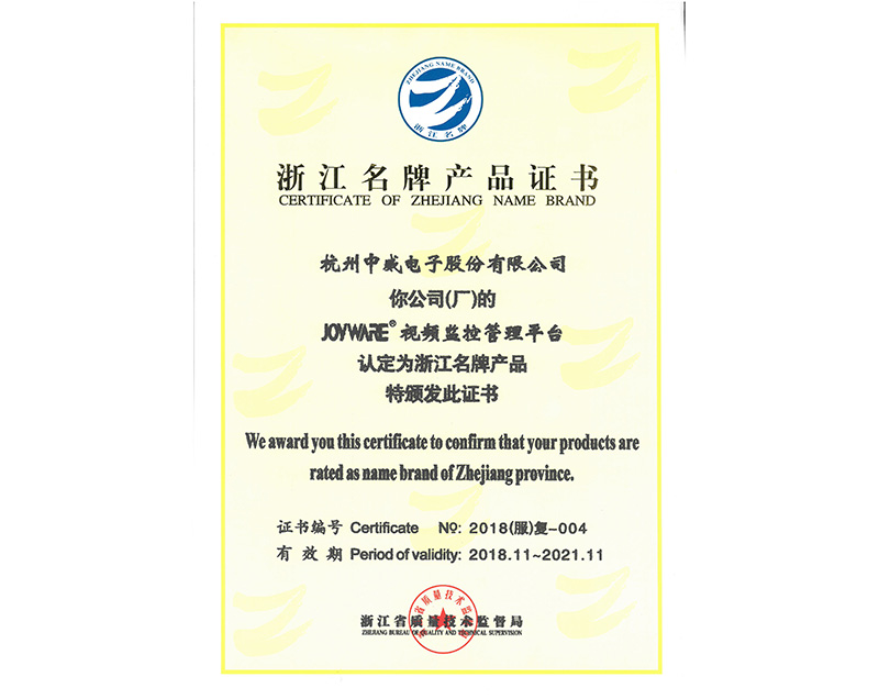 2018浙江名牌产品证书