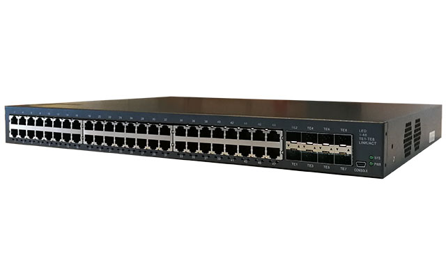在1U盒式交换机上,实现48个千兆+8个万兆的业界最高端口密度,搭载高性能的ASIC交换芯片,可满足各种复杂场景的应用需求