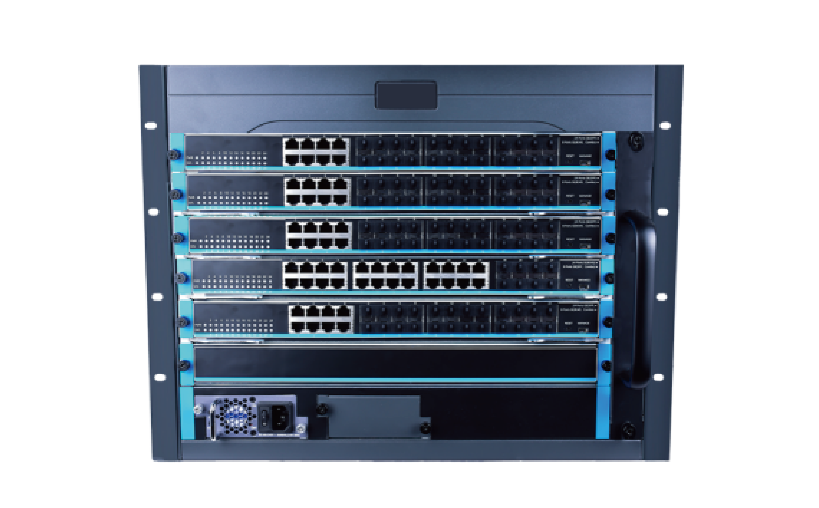 支持高密度的万兆业务板,并且实现板卡间三层全线速无阻塞交换;